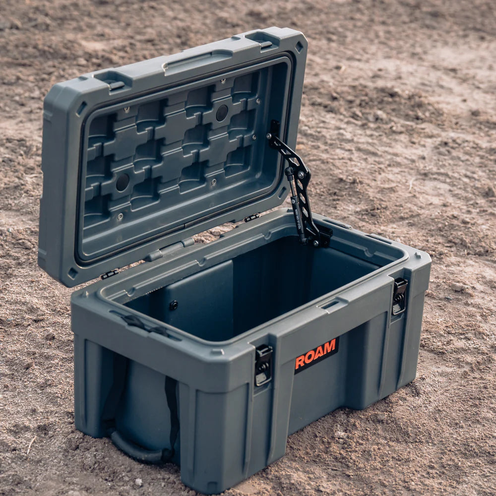 The ROAM 55L Rugged Case is a heavy-duty storage case and ideal for storing your tools and dry goods that need to be packed in tight spaces. Perfect for the back seat of your car or the bed of your truck. This premium case features a durable LLDPE shell, our proprietary lid lift mechanism, Nylon rope handles, steel lockable latches, and a dust/water resistant gasket seal that makes sure your gear always stays protected no matter the weather or terrain. The threaded inserts in the lid give you the ability to add a lid organizer or molle panel to take your organization to the next level. Having an interlocking design makes stacking and pairing simple no matter the amount of gear you carry.