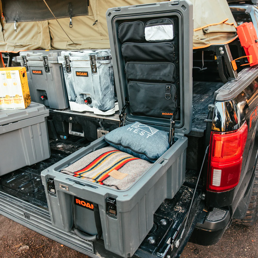 The ROAM 86L Rugged Case is a heavy-duty storage case that comes in 4 color options and is ideal for storing your valuable tools and dry goods. Perfect for the back seat or bed of your truck. This premium case features a durable LLDPE shell, our proprietary Lid-Lifts, Nylon rope handles, steel lockable latches, and a dust/water resistant gasket seal that makes sure your gear always stays protected no matter the weather or terrain. The threaded inserts in the lid give you the ability to add a lid organizer or molle panel to take your organization to the next level. Having an interlocking design makes stacking and pairing simple no matter the amount of gear you carry.