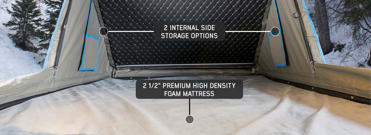 - Retractable Sleeping Area: Provides spacious comfort at night and extra headroom during the day.